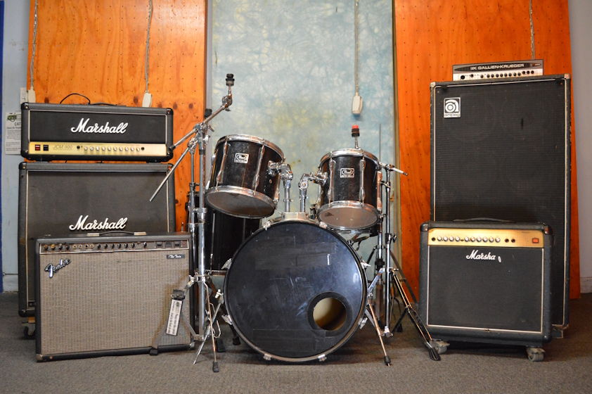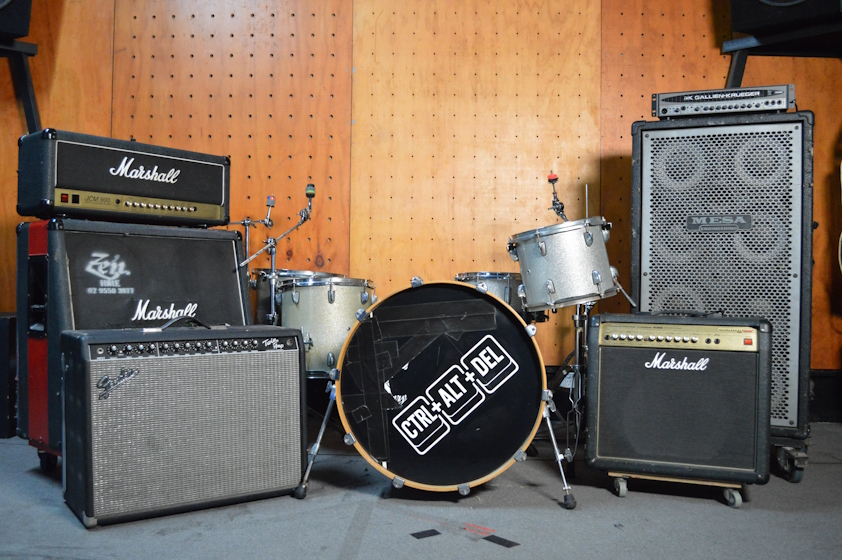 – 3x Guitar Amplifiers – 1 x Bass Amplifier – 1 x Pearl Masters or Pearl Session Studio drum kit (cymbals not included) – Powerful split-system air conditioners. – A powerful vocal PA. – Soundcraft mixing desk with 8 microphone inputs. – Custom designed acoustic treatment in the form of tuned Helmholtz resonators and absorption. – Easy to use in room recording system. – Shure SM58 vocal microphones are available at no extra cost.